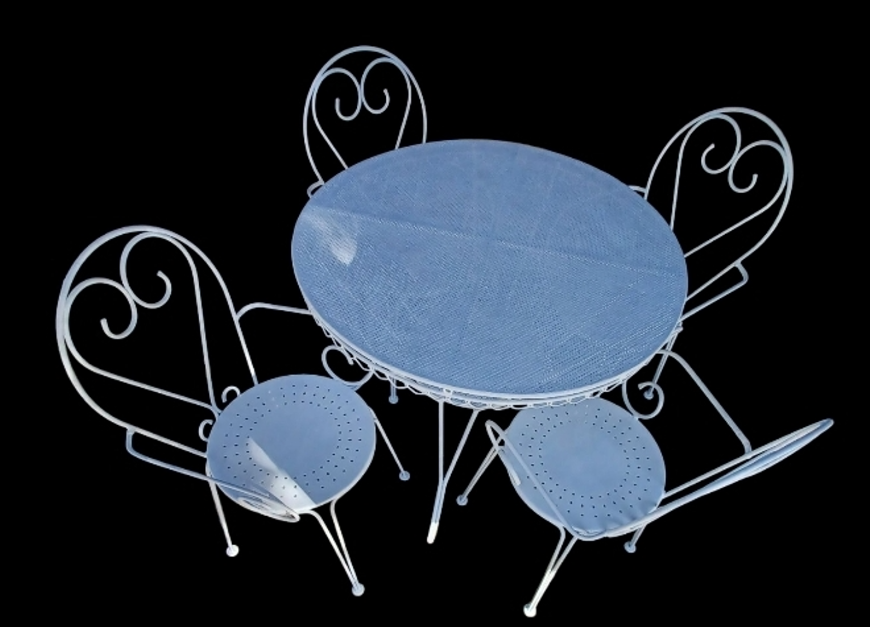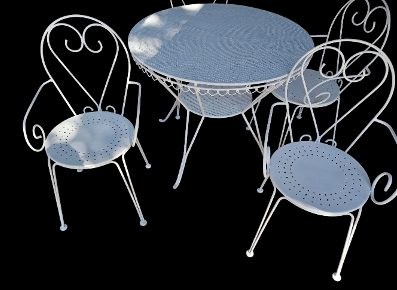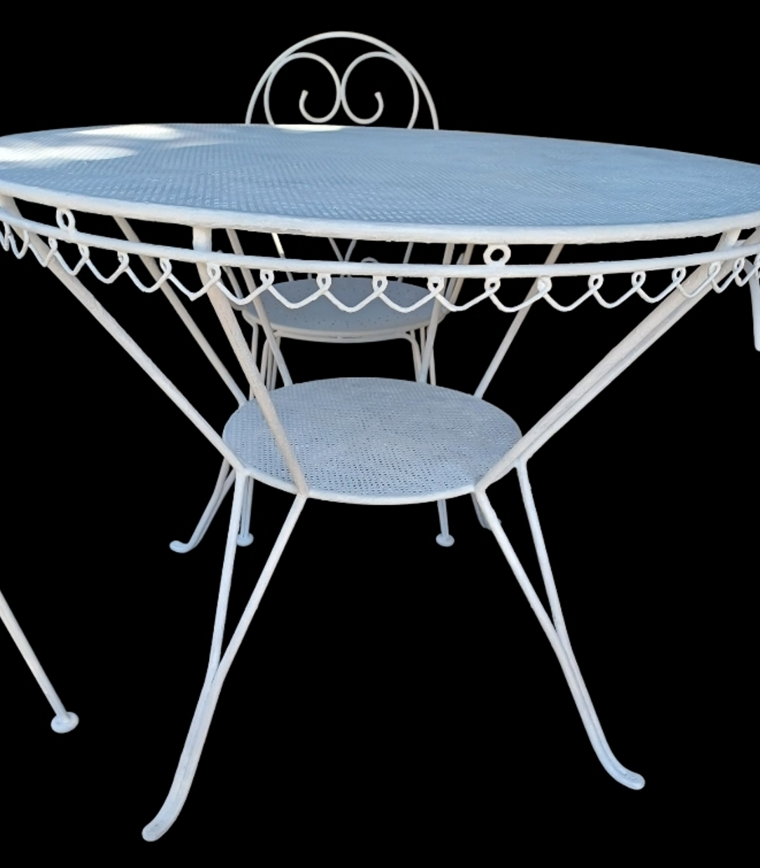 Scopri il fascino intramontabile del nostro set da giardino vintage in ferro battuto, un autentico gioiello degli anni ’60!