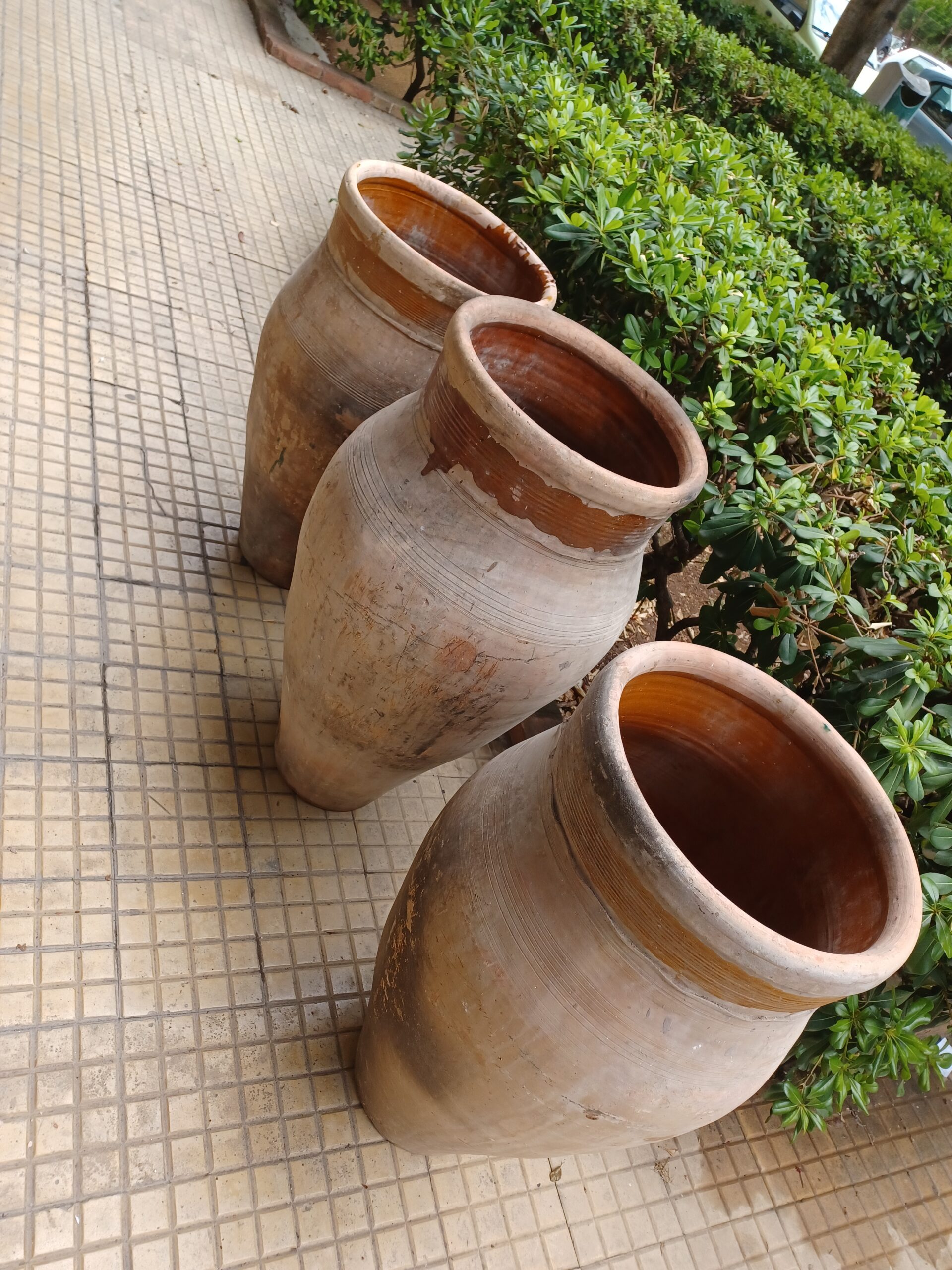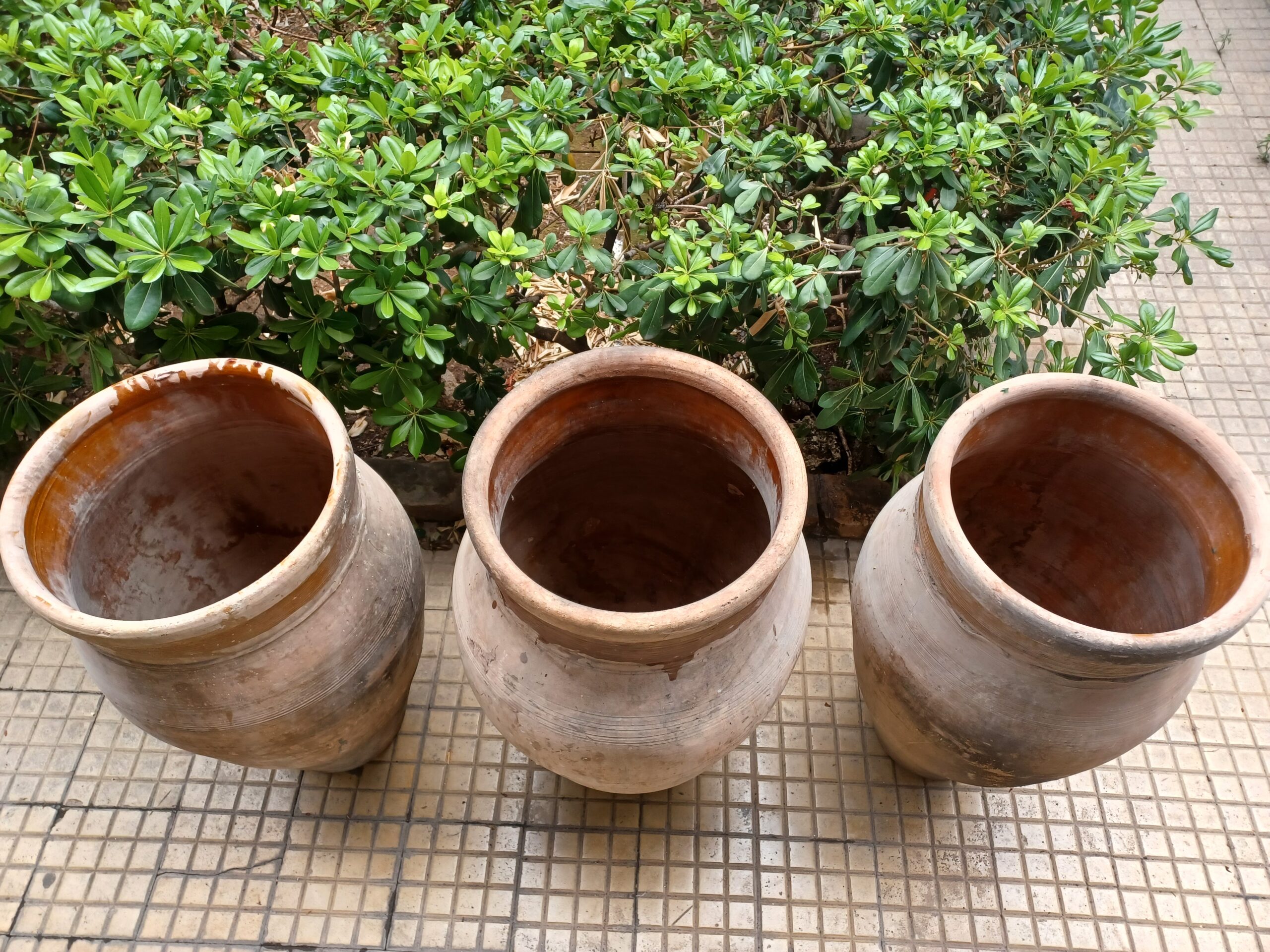 Vasi Siciliani in terracotta del secolo fine XVlll, bellissimi vasi da arredamento esterno o interno, vasi in buone condizioni provenienza Sicilia, tris di vasi da usare per mettere delle piante all’interno, come sotto rubinetto, o come pezzi da esposizione da inserire su ambiente rustico e antico.